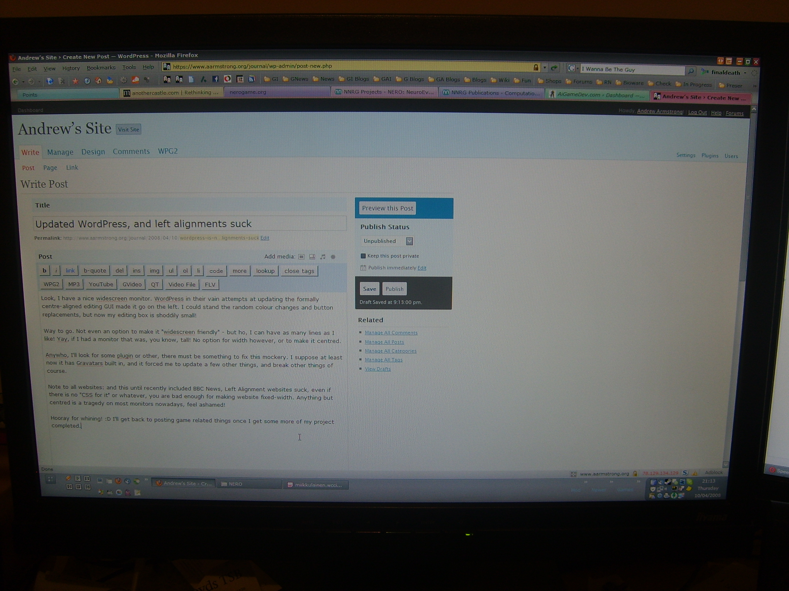 Website and journal of Andrew Armstrong